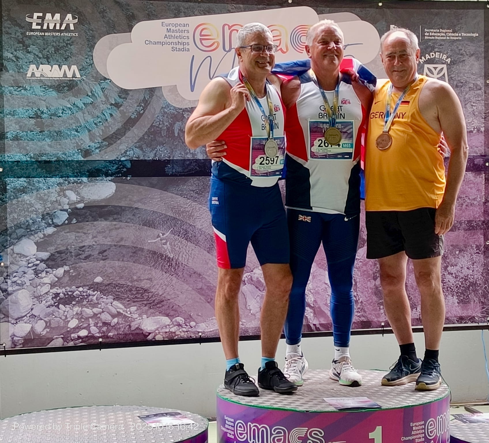 Peter Purdack holt Bronze im Kugelstoßen M65 bei den European Masters Championships 2025, Madeira.